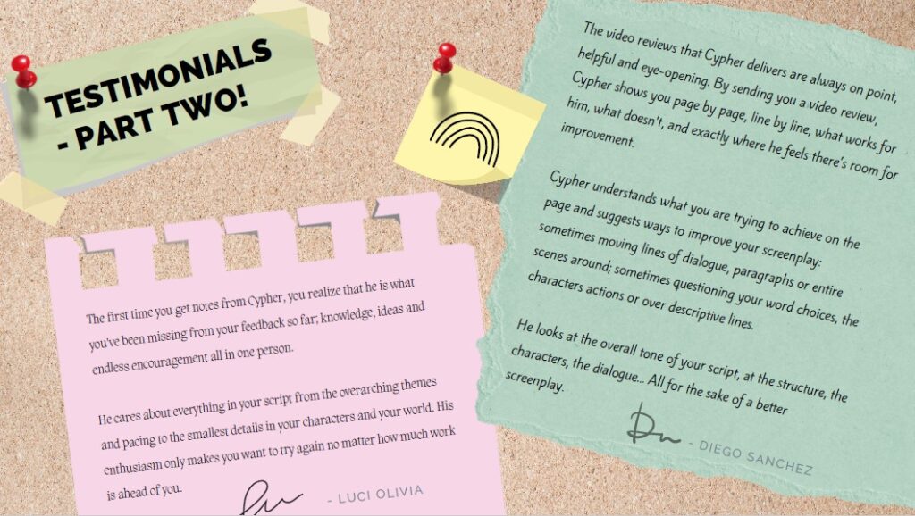 I do things quite different. I specialize in providing a screen recording of your script as I work through it. No more long notes to trawl through, no more flicking between a text file and your script to see where someone meant what. Audio notes + red-line edits pinpoint areas of improvement as you watch. Just sit back and watch. It’s that easy.